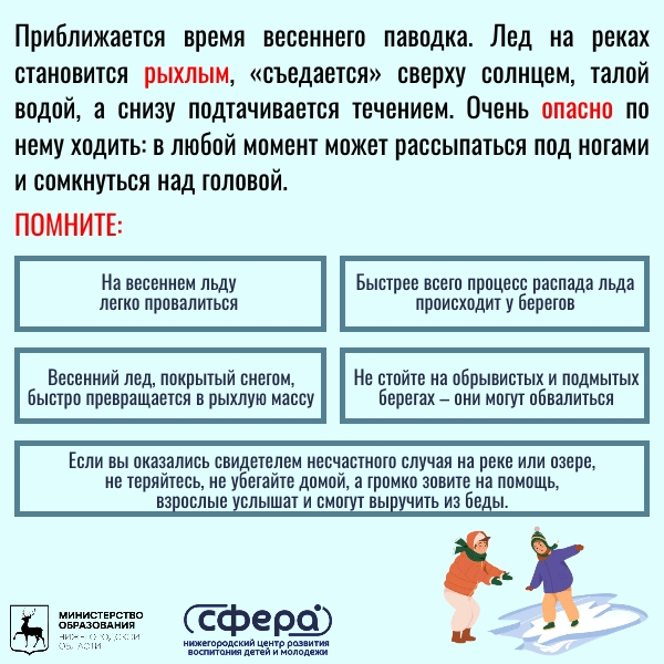 Мы подготовили для вас наглядную памятку «Весенний лёд: где скрыта опасность? Памятка для семьи». В ней собраны самые важные советы, которые сохранят жизнь и здоровье вам и вашим детям.